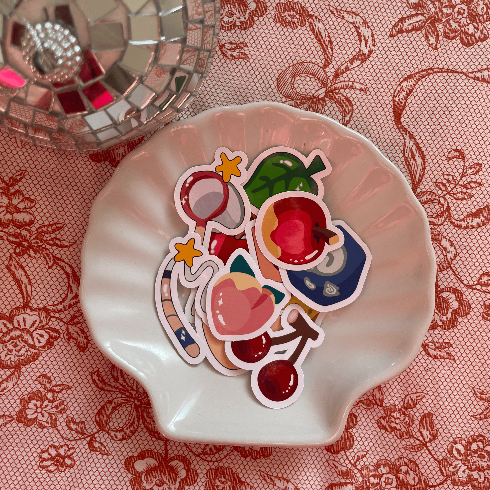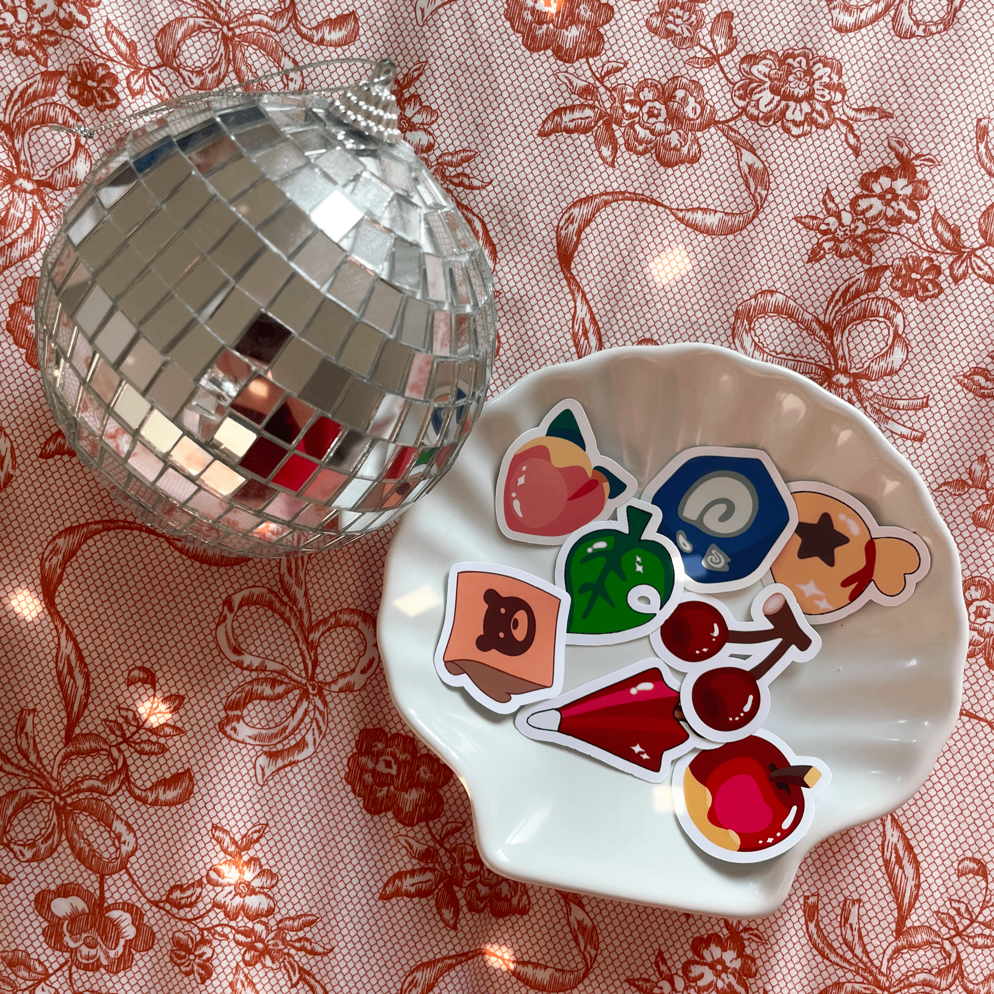 Lot de 11 stickers Animal Crossing - fruits et outils