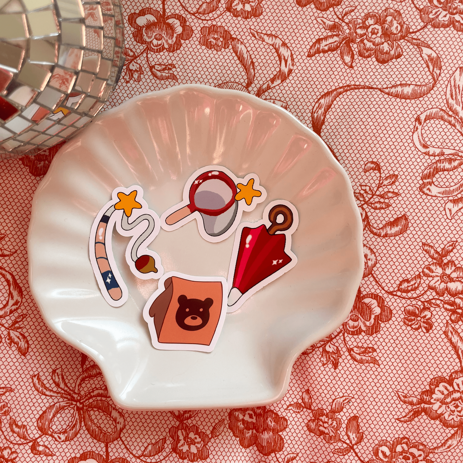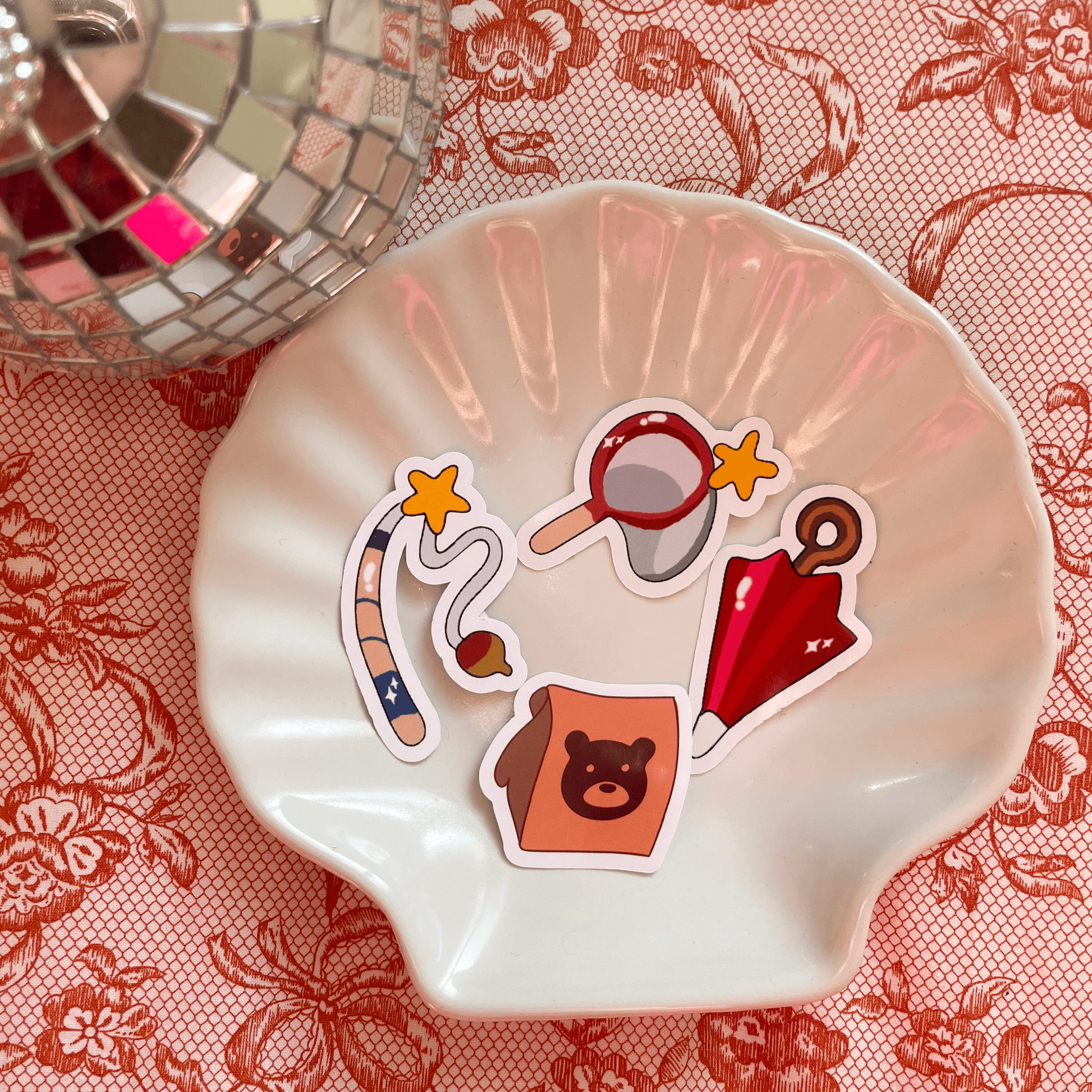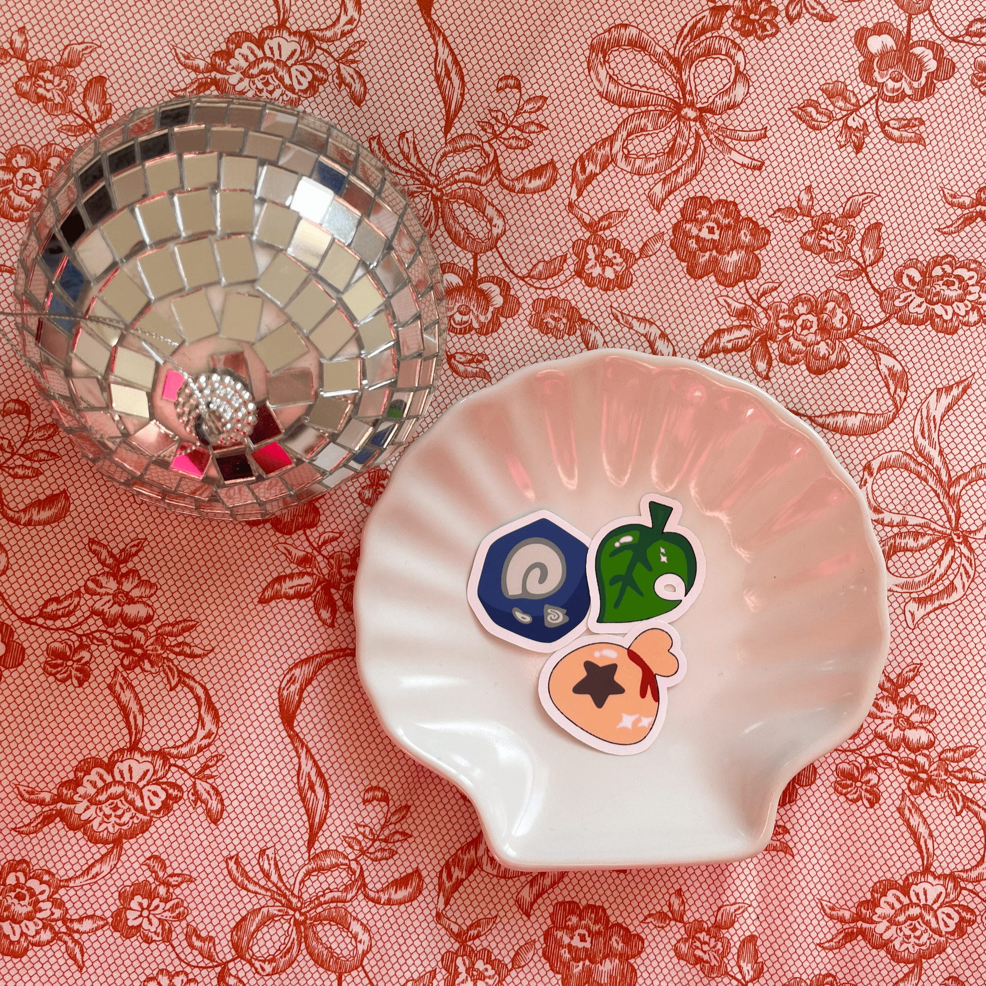 Lot de 11 stickers sur le thème animal crossing dessinées à la main. Retrouvez les fruits, les objets et les outils phares du jeu.