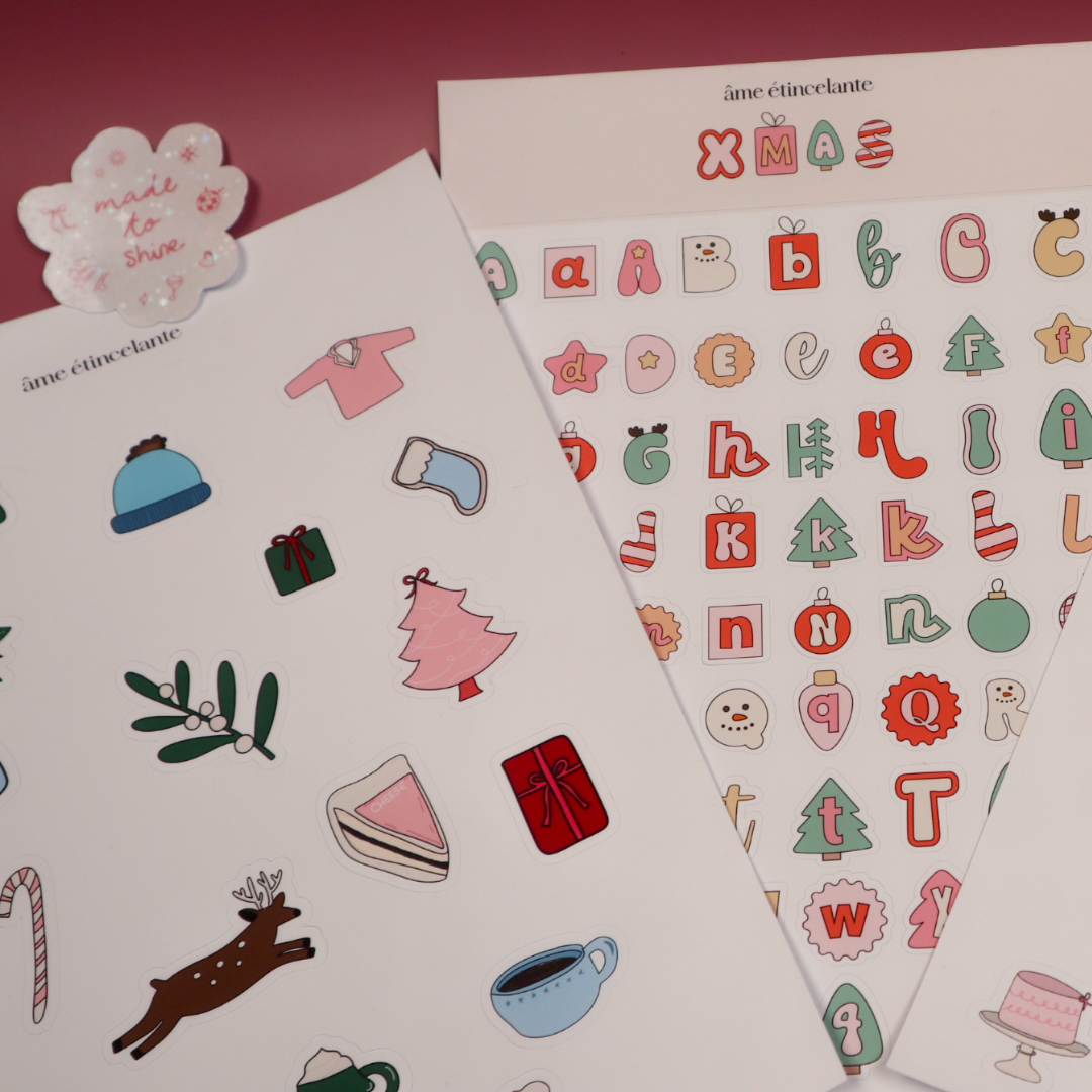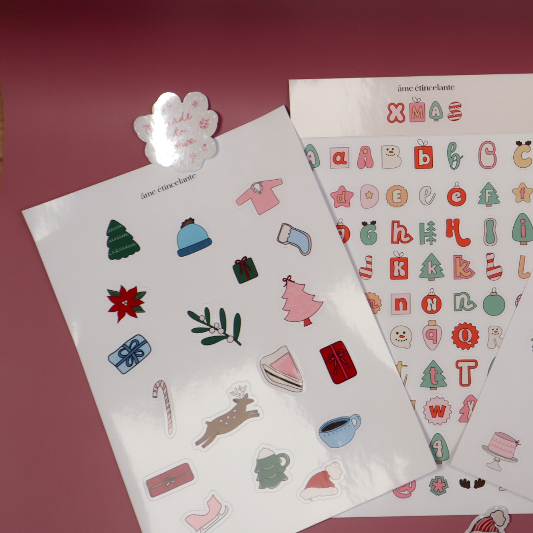 Cette planche de stickers de Noel est idéale pour toutes vos pages de scrapbooking, journaling ou bullet journal pour y inscrire vos plus beaux souvenirs.