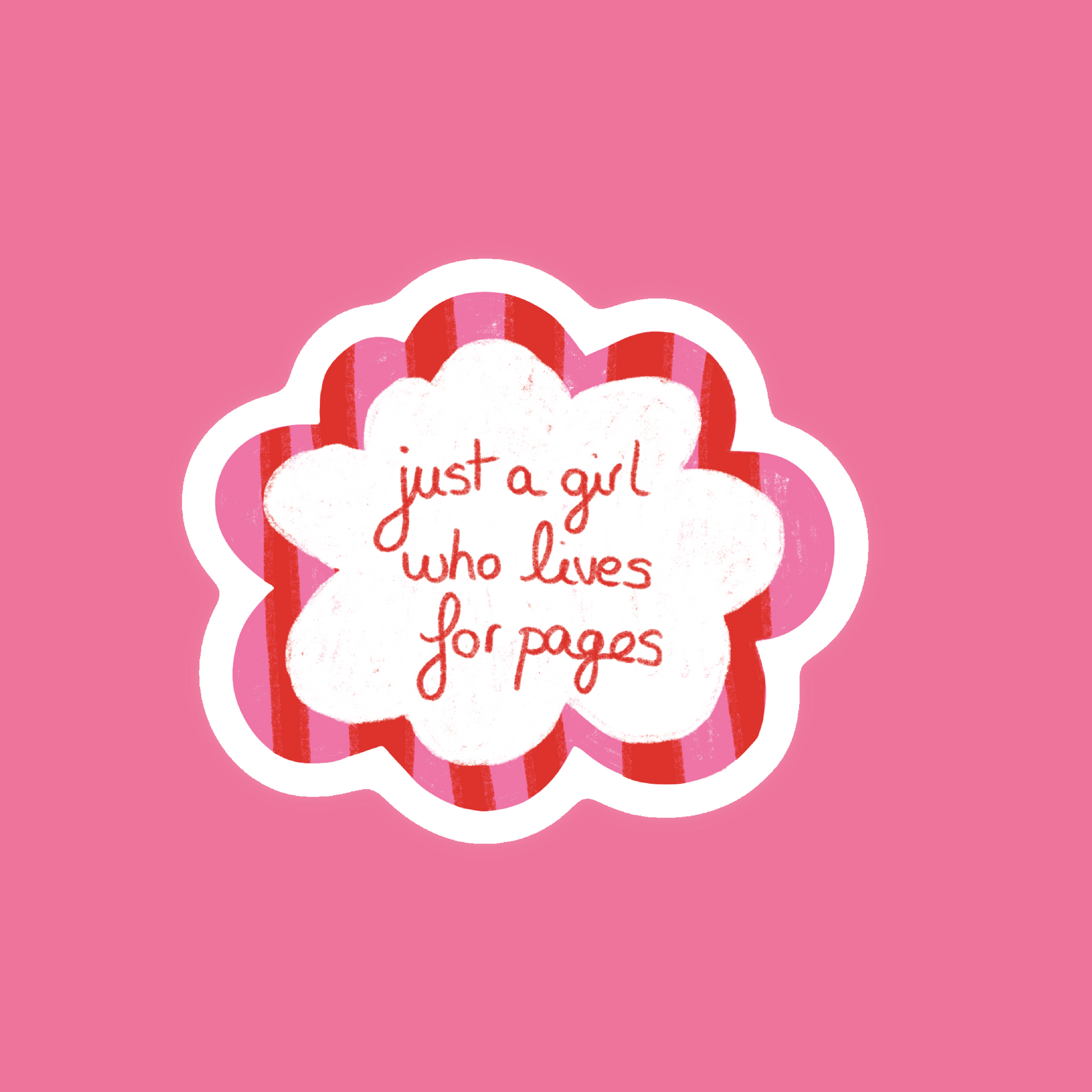 Stickers unique grand format, entièrement découpé, en forme de nuage et citation "just a girl who lives for pages".